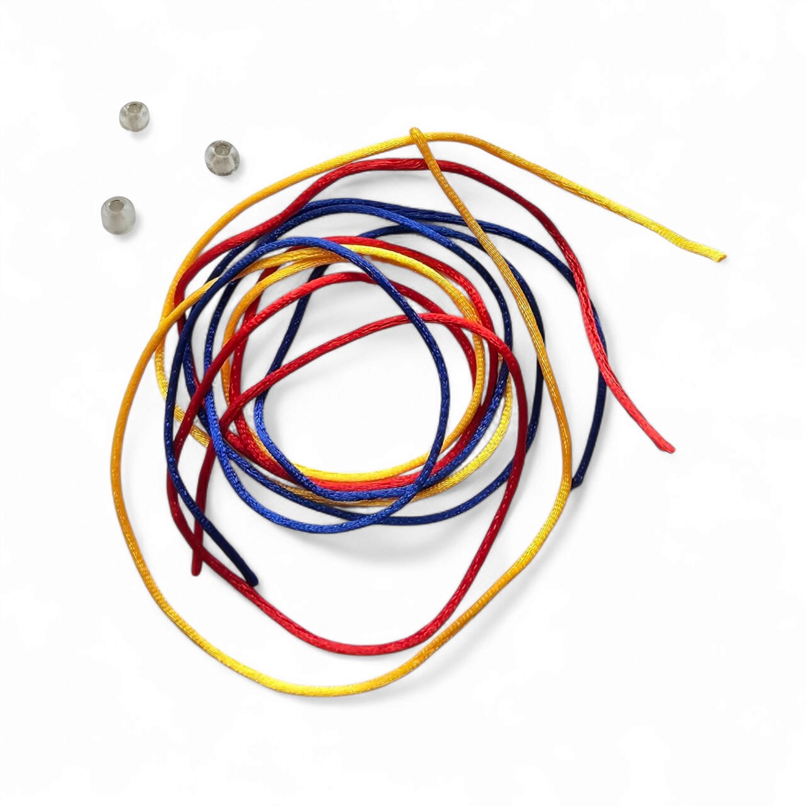 Ata Kendama – Basic Silk String Pack + bead – 3 ate cu 3 stoppere – Rosu-galben-albastru