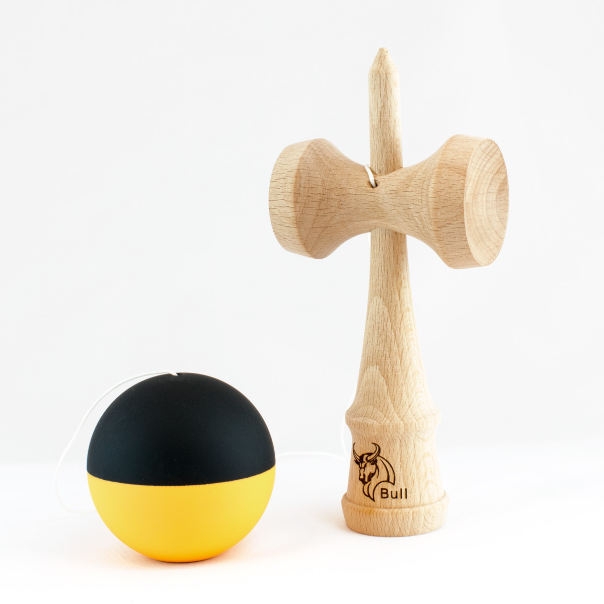 Fiecare kendama vine in cutie personalizata impreuna cu o ata de rezerva si doua stickere.