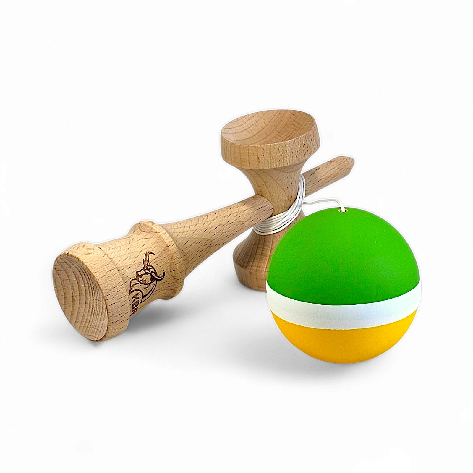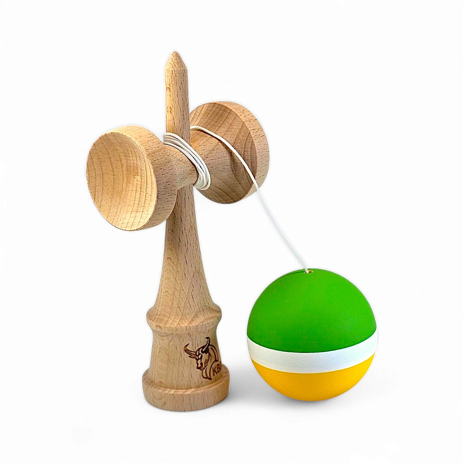Kendama Bull White Stripe rubber green-yellow, cupe mari
